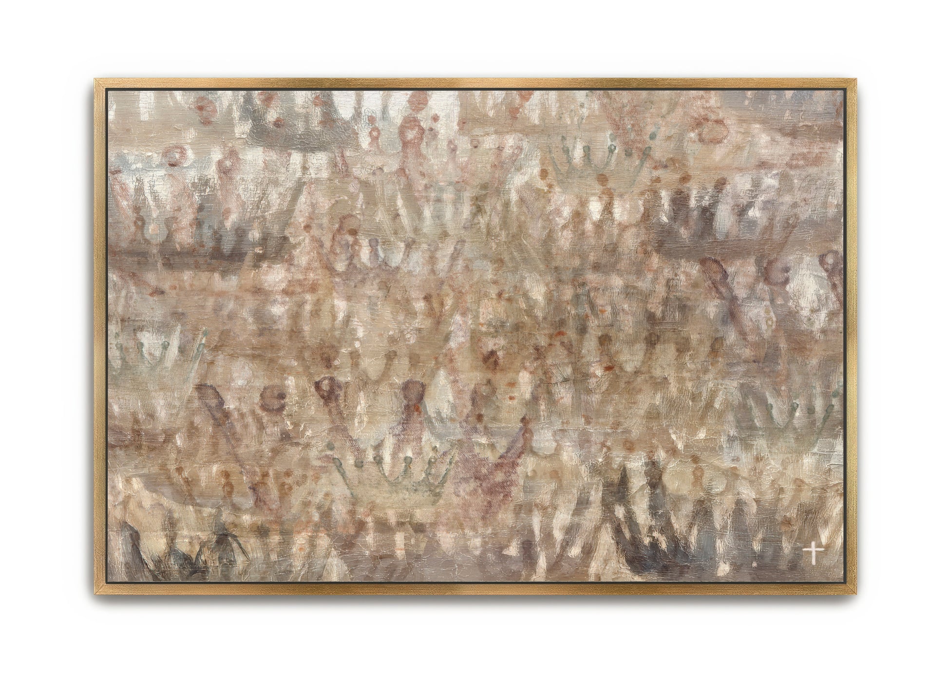 This piece is a reflection of Revelation 4:10-11, where the elders cast their crowns before the throne in worship, declaring that “Worthy are you, our Lord and God, to receive glory and honor and power.”