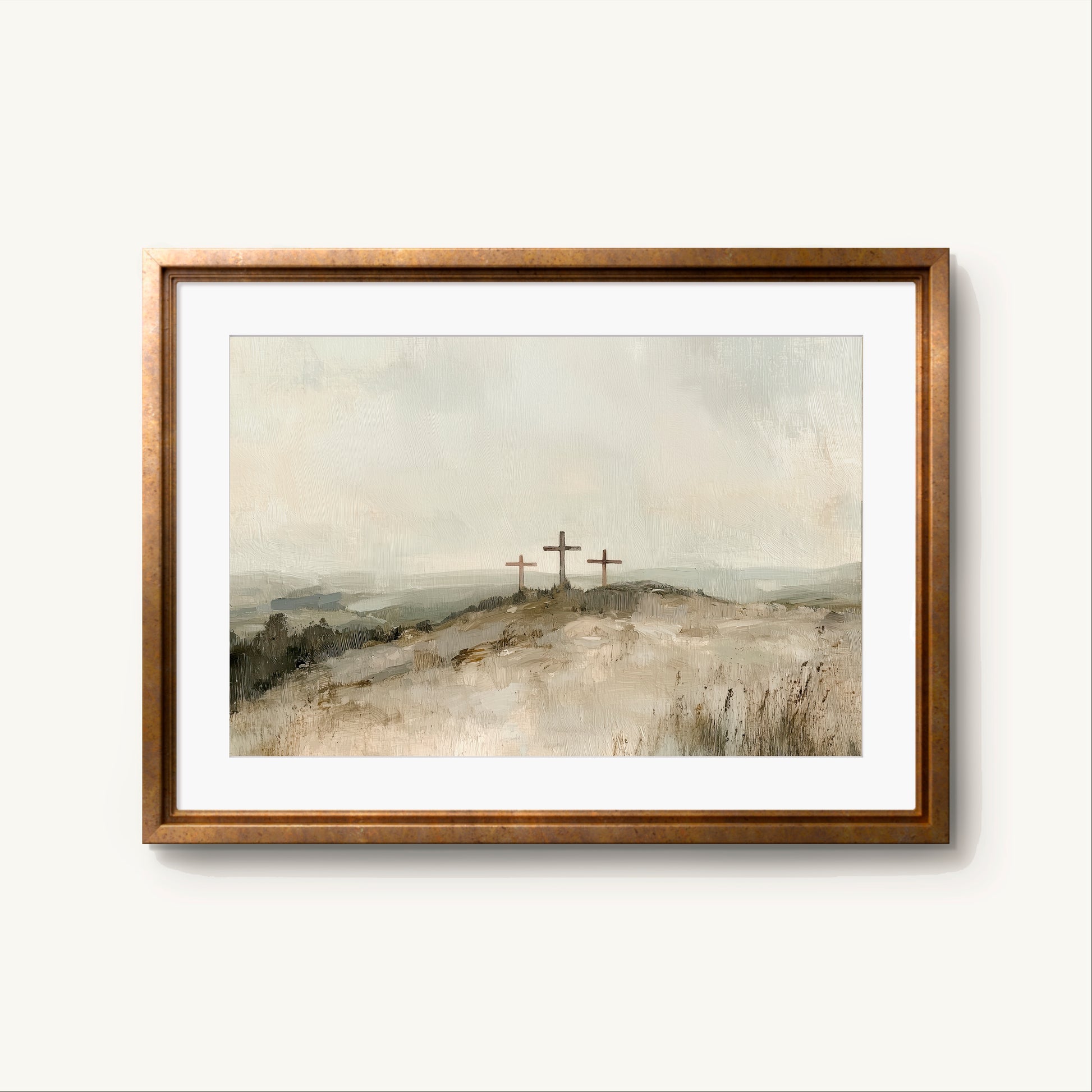 On a quiet hill, silhouetted against the sky, three crosses stand as a timeless symbol of sacrifice and salvation. The Hill of Redemption invites reflection on the moment when Jesus bore the weight of the world’s sin, offering Himself as the perfect atonement.