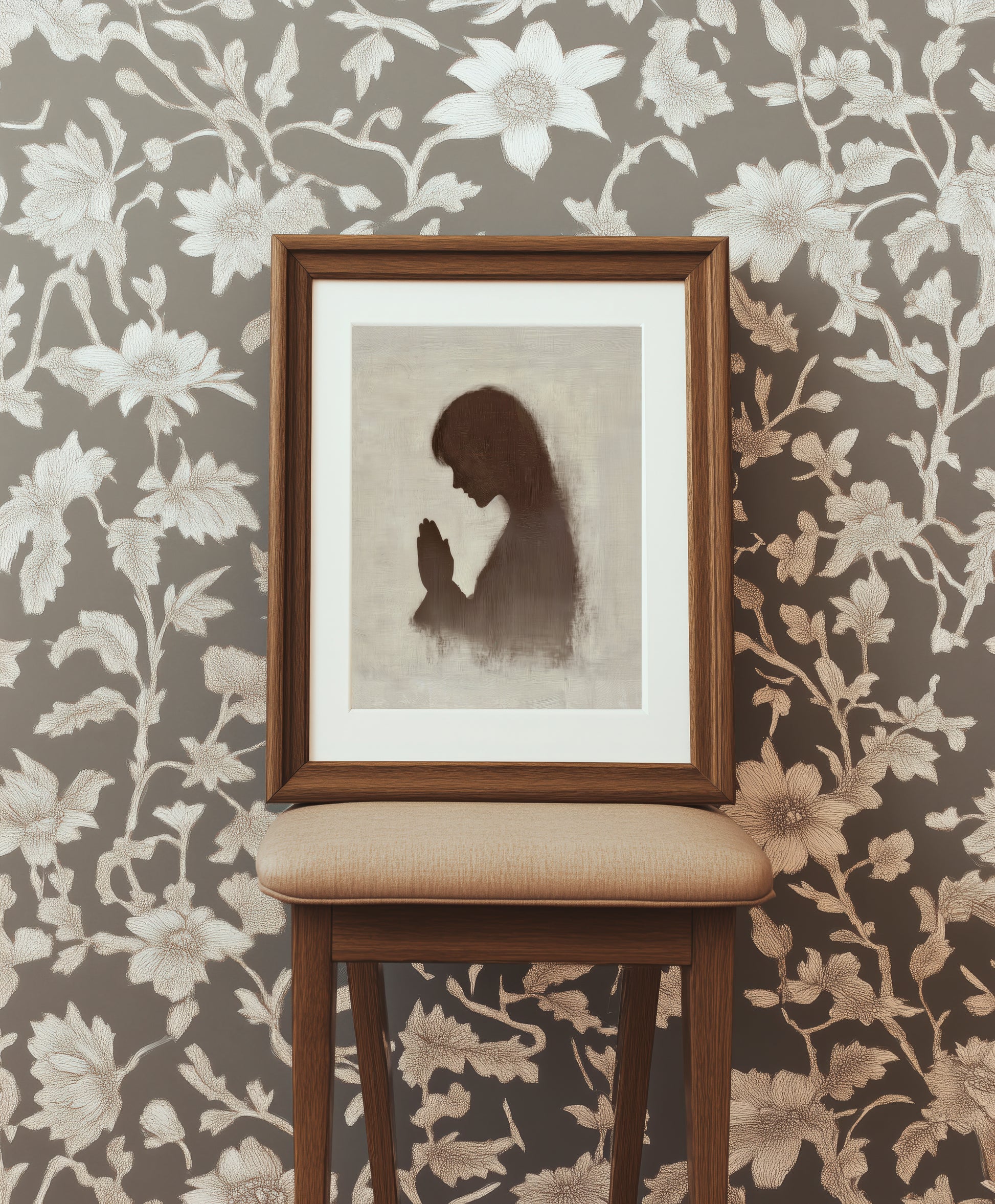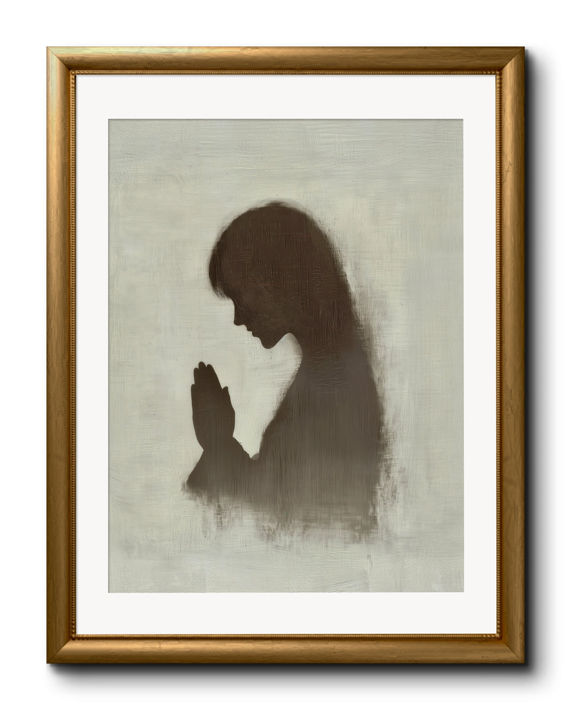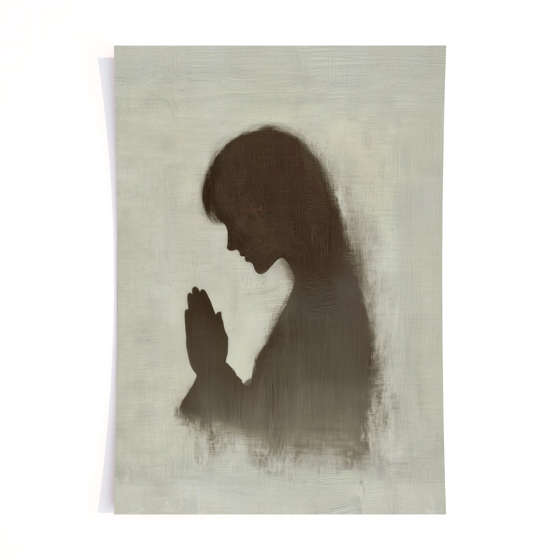 This piece captures the quiet, powerful moment of communion with God. The silhouette of a praying figure represents humility and dependence, reminding us of the deep comfort and strength found in seeking the Lord. In prayer, we draw near to our Creator, bringing our burdens and joys alike. May this artwork encourage you to approach God with the same spirit of reverence and trust each day.