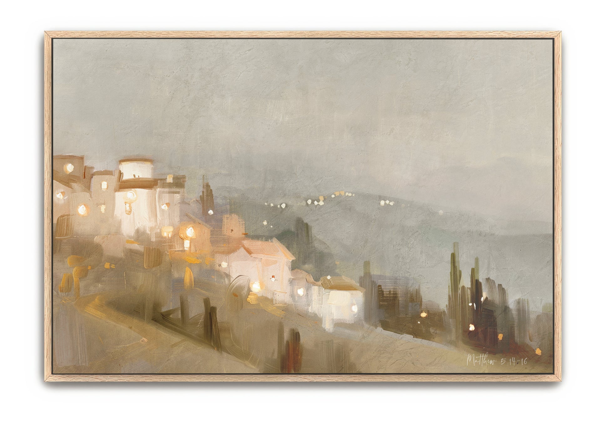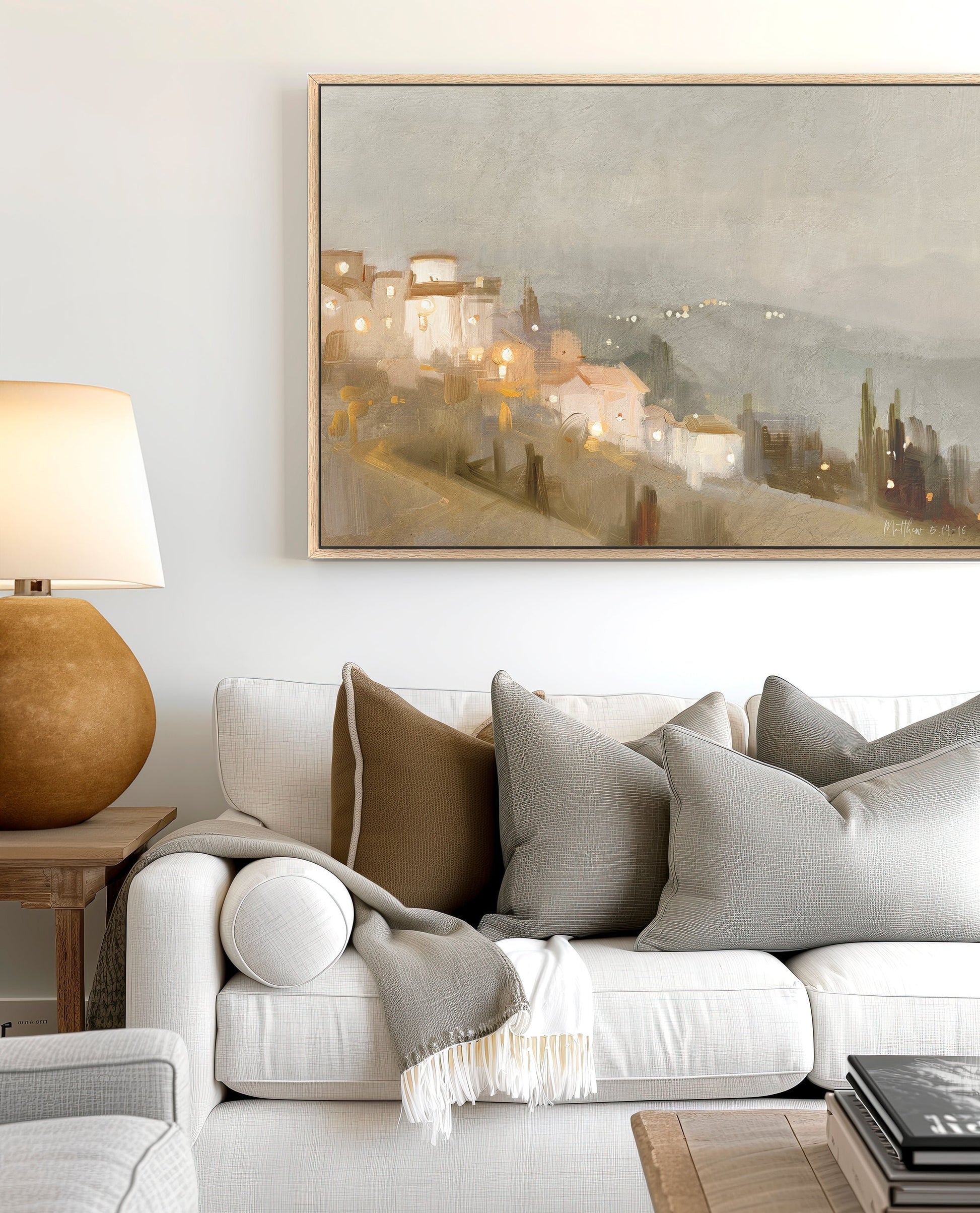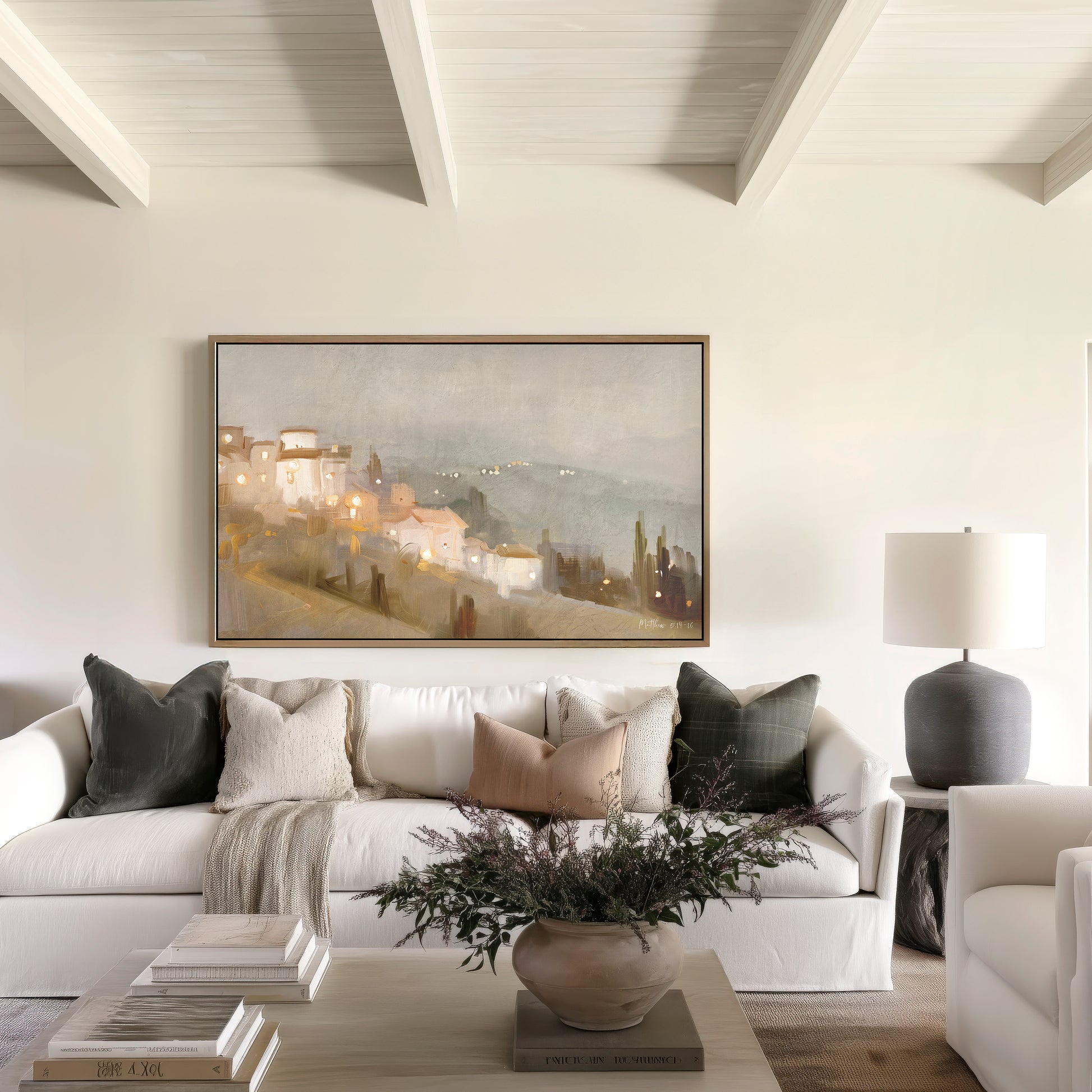 When I saw this picture on instagram I knew I had to have it. I purchased my first art when I was 25 years old. Same thing, I walked past a store in Beverly Hills and a Dorothy Spangler picture stopped me. Same thing with many other art pictures. This is what happened to me. I had to have City on a Hill and I bought it for myself for my birthday. It actually arrived on my birthday and was more than expected. I LOVE it. It drew me and it draws me everyday. I have never purchased anything in this price point on line, let aloe instagram, but I'm glad I did.