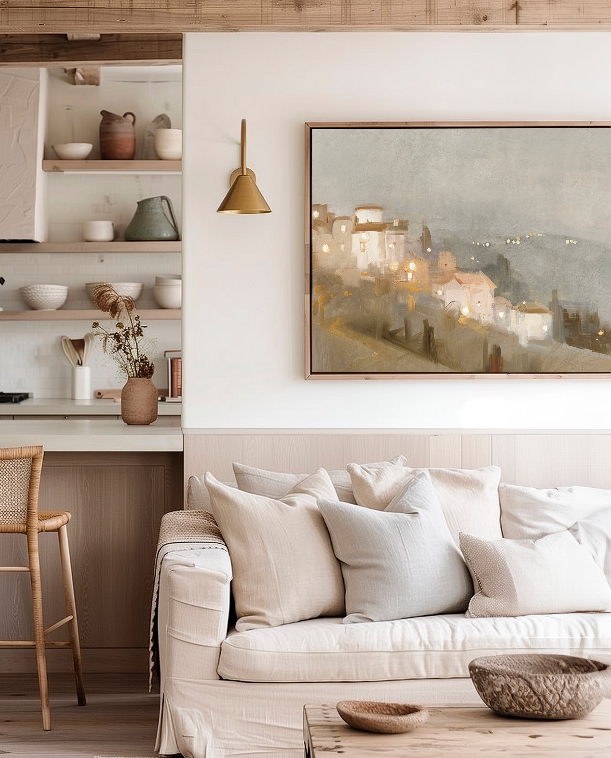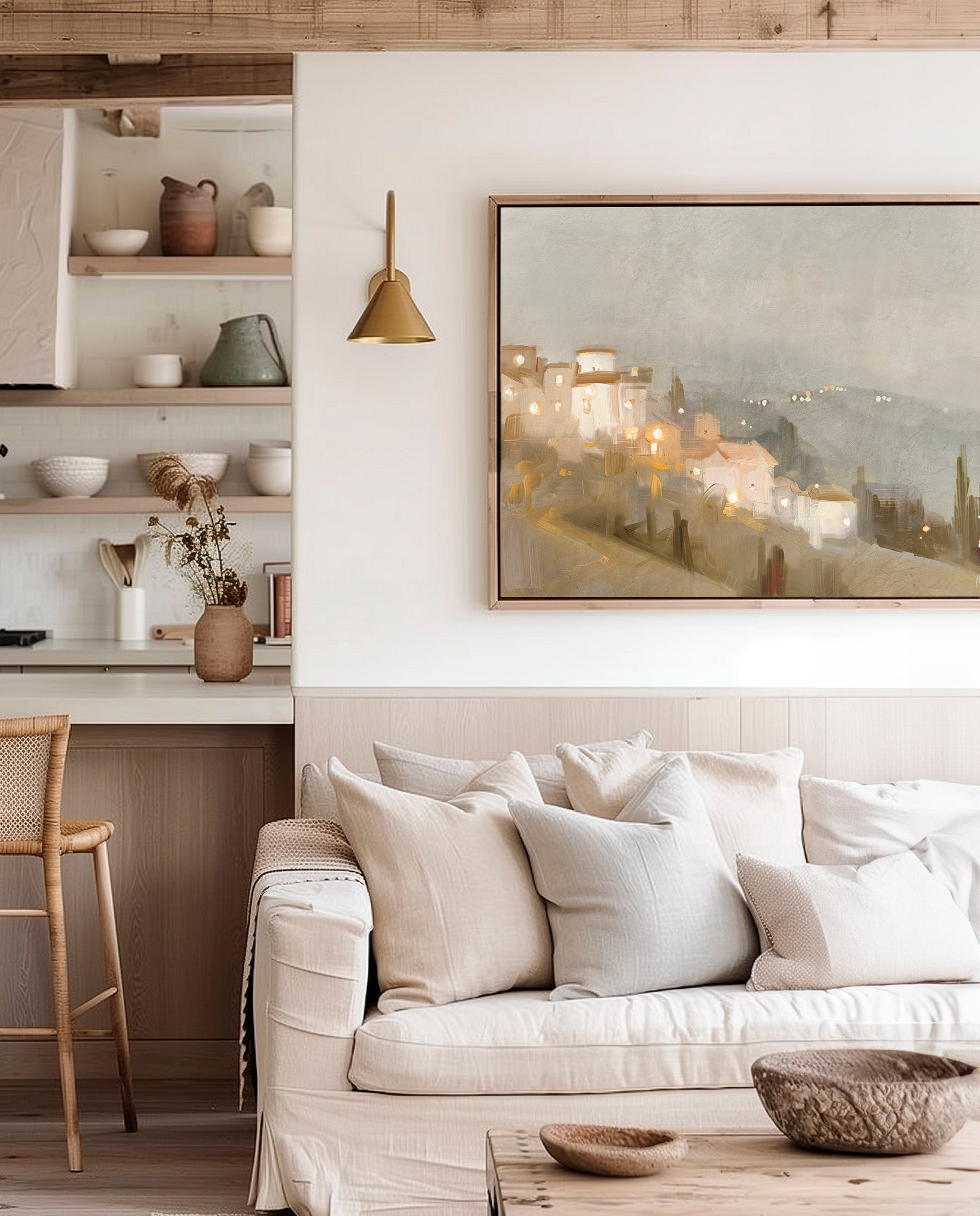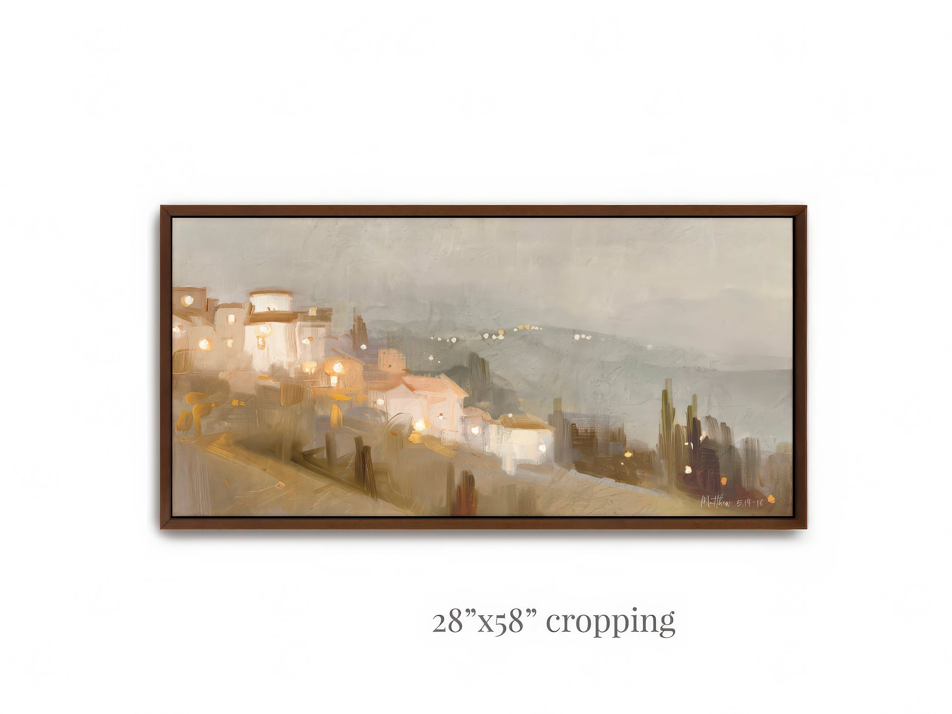 When I saw this picture on instagram I knew I had to have it. I purchased my first art when I was 25 years old. Same thing, I walked past a store in Beverly Hills and a Dorothy Spangler picture stopped me. Same thing with many other art pictures. This is what happened to me. I had to have City on a Hill and I bought it for myself for my birthday. It actually arrived on my birthday and was more than expected. I LOVE it. It drew me and it draws me everyday. I have never purchased anything in this price point on line, let aloe instagram, but I'm glad I did.