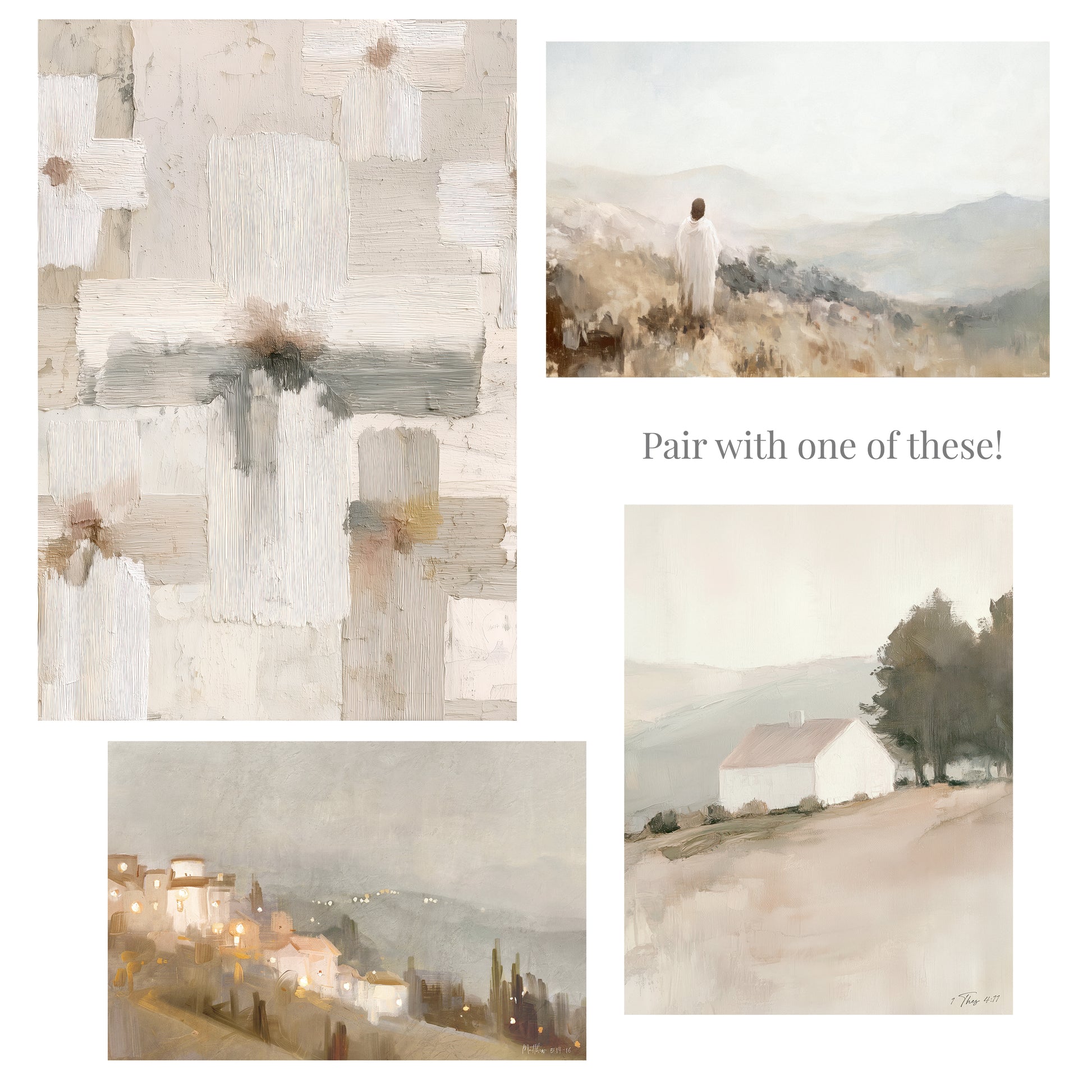 This artwork draws its inspiration from Matthew 5:14, where Jesus says, "You are the light of the world. A city set on a hill cannot be hidden." The illuminated city symbolizes the visibility and influence of a life lived in accordance with Jesus' teachings. Just as a city on a hill is seen by all, believers are called to shine their light before others, reflecting God's love and truth. The elevated position of the city signifies the elevated calling of Christians to stand out in the world, providing guidance, hope, and a beacon of God's grace.