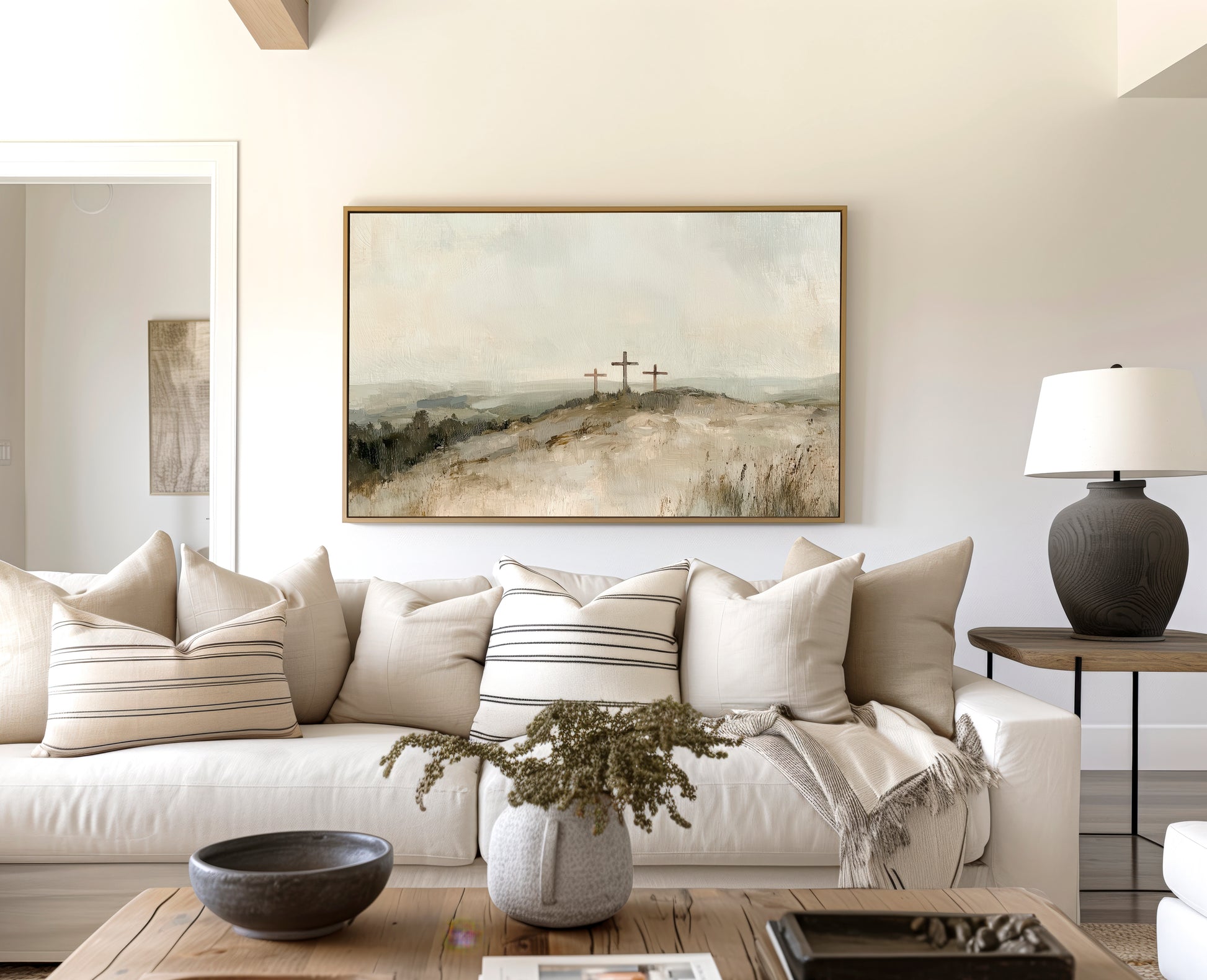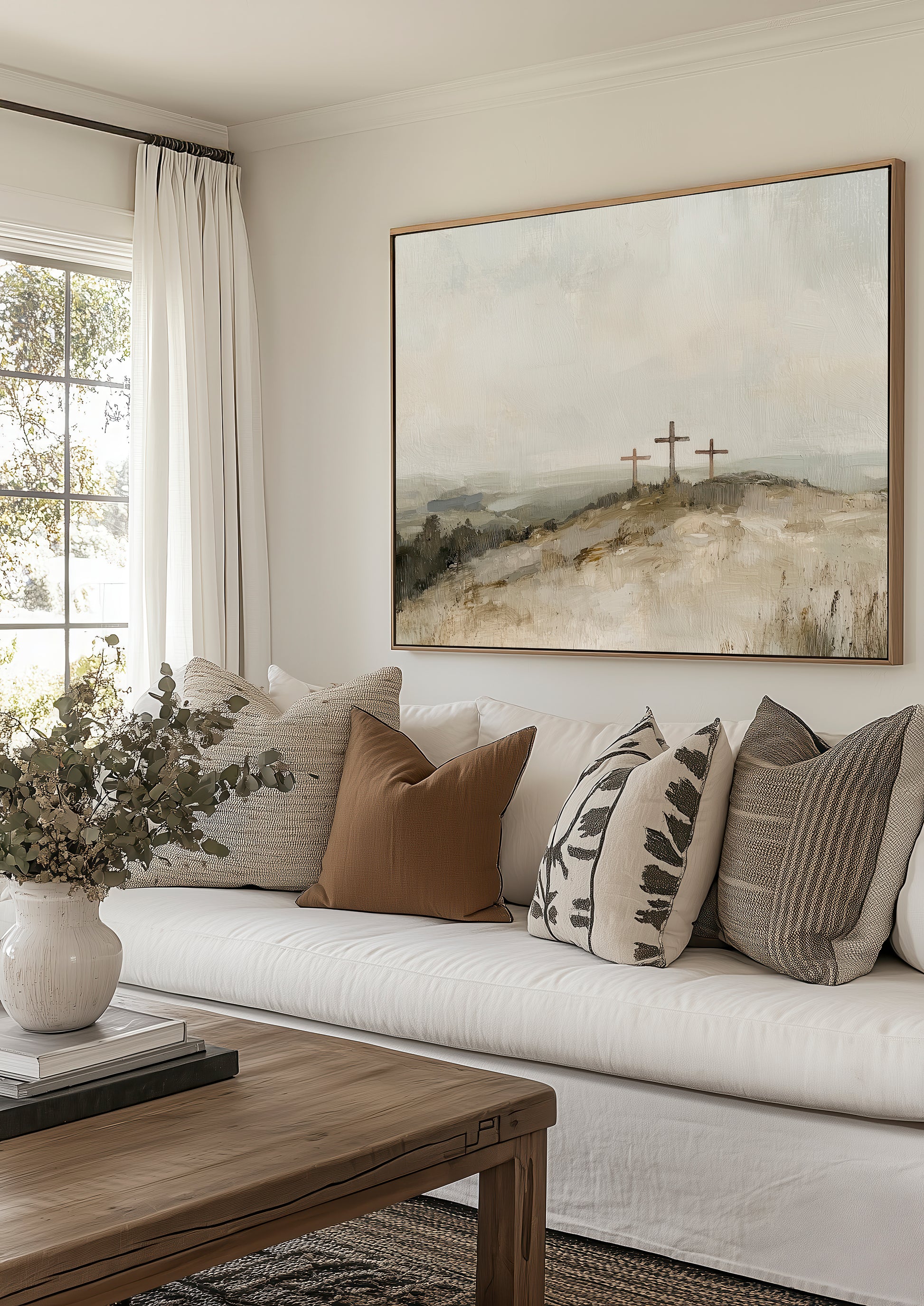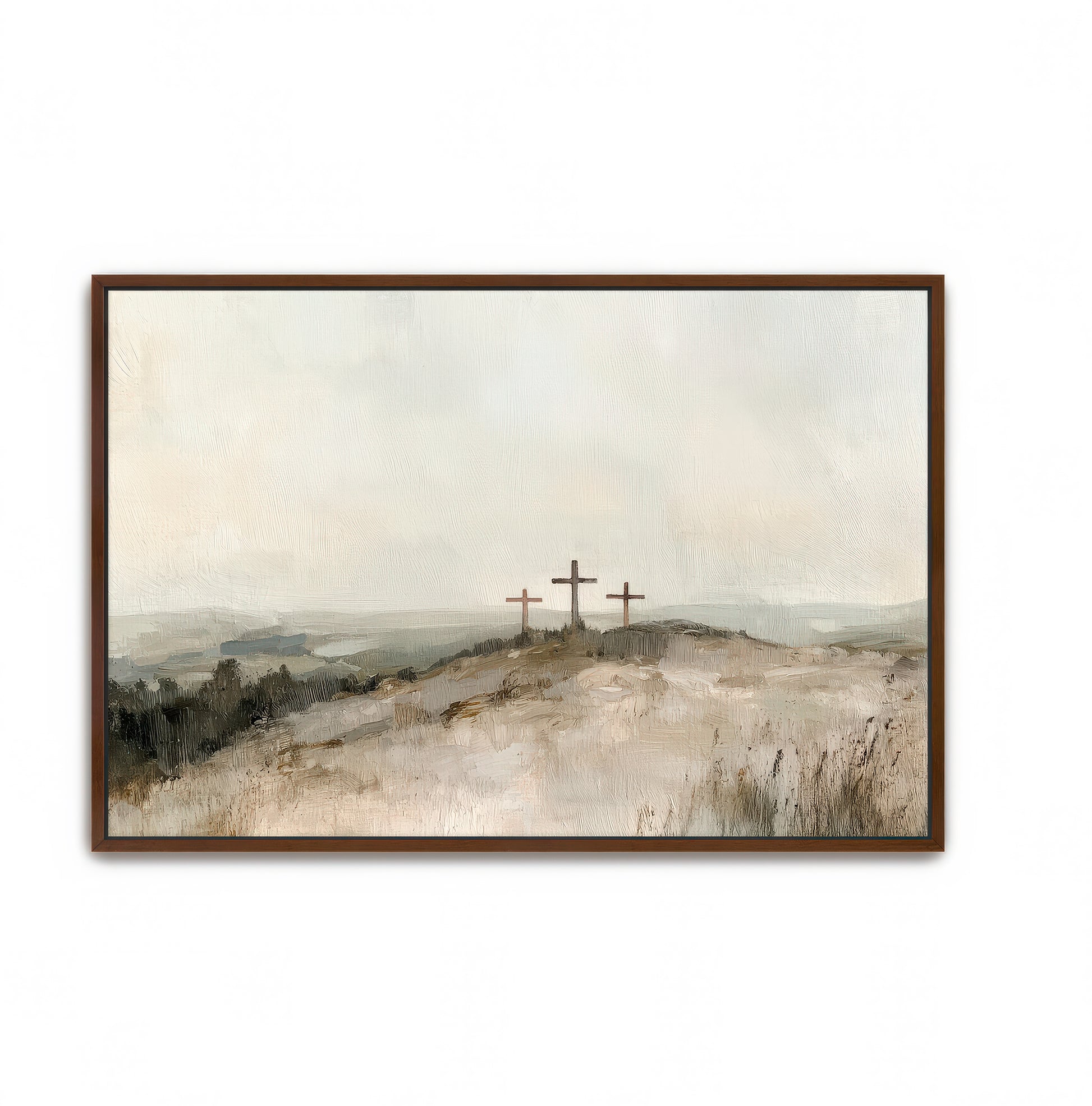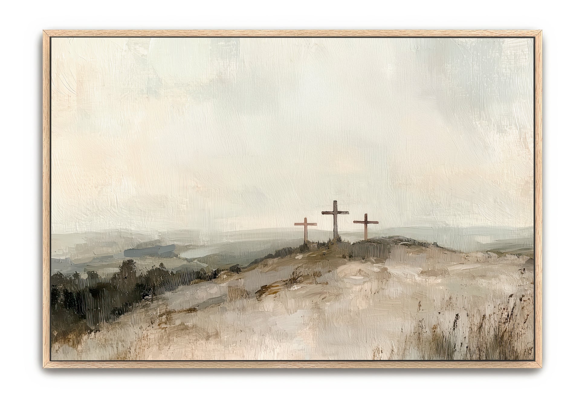 The Hill of Redemption is a beautiful piece framed in light wood.