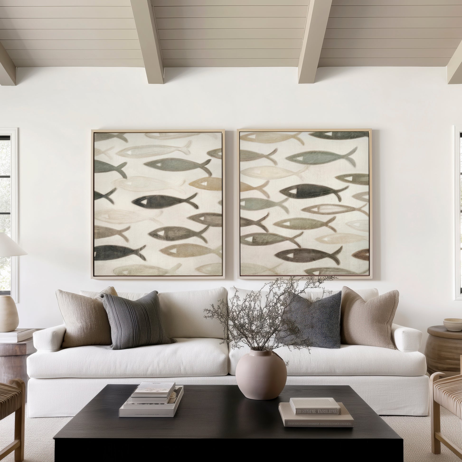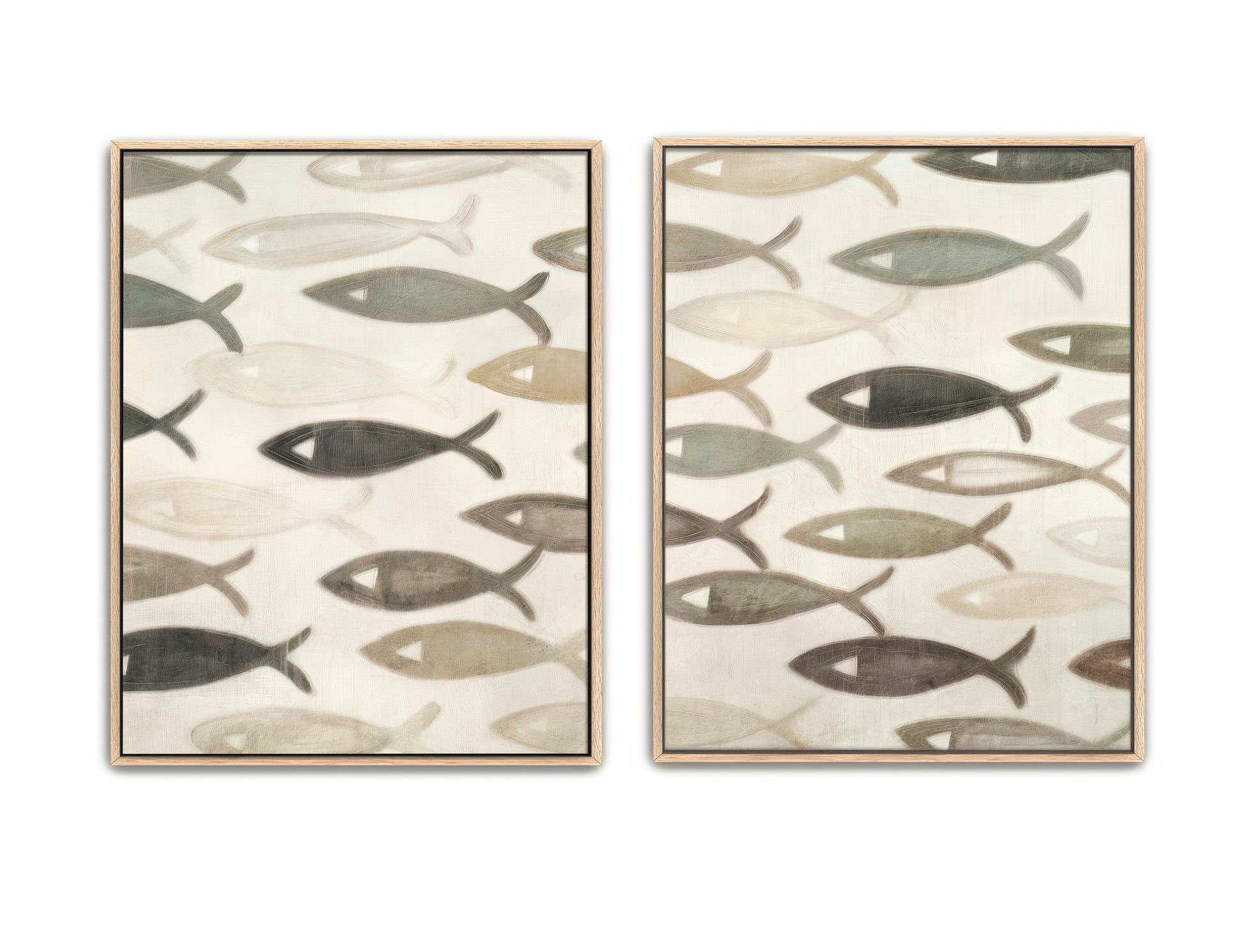 I bought the set of the fishes, with silver frames, the largest size available in canvas. I can't express enough how much I enjoy them, it fills my heart when I stare at them, thinking that beyond of being a wall art, it's a meaningful decoration for our newly renovated house.
